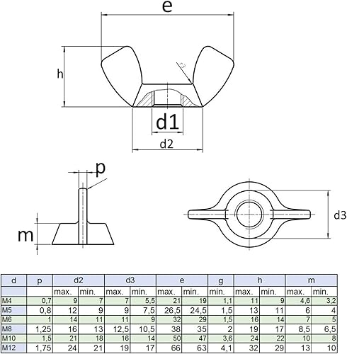 500 Stück Flügelmuttern/Größe: M5 / Kantig/Amerikanische Form/Material: Galvanisch verzinkt Stahl/Schmetterlingsmutter/Handspannmutter