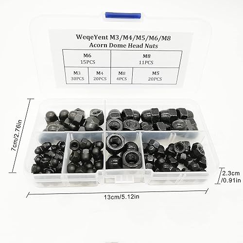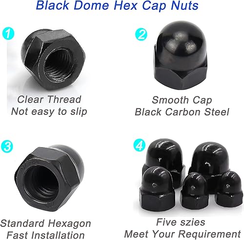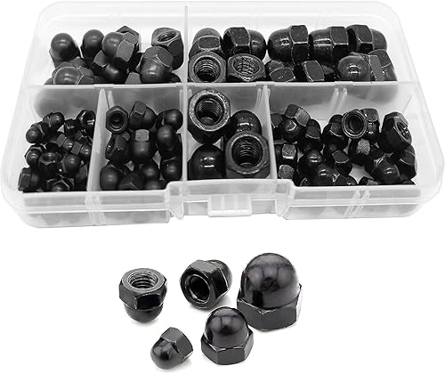 WeqeYent Schwarz Eichel Sechskant Hutmuttern 100 Stück, M8/M6/M5/M4/M3 Hutmuttern Hartmetall Stahl Sechskant Dekorative Kappenmutter für Schrauben Bolzen (Schwarz)