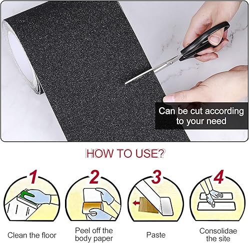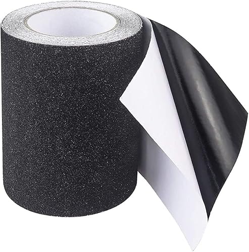 Anti-Slip Klebeband, rutschfestes Klebeband mit hoher Traktionskörnung, Starkes Streifen-Schleifklebeband für Treppen, Trittstufe, Rampen, 15 cm x 5 m Schwarz
