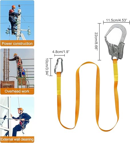 Absturzsicherung Sicherheitsgurt,1.8M Fallschutz Sicherheitsseil Mit 2200KG,Werkzeugseil Auffangseil Fallschutz für Outdoor Baumklettern Bergsteigen Arbeiten in der Höhe