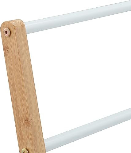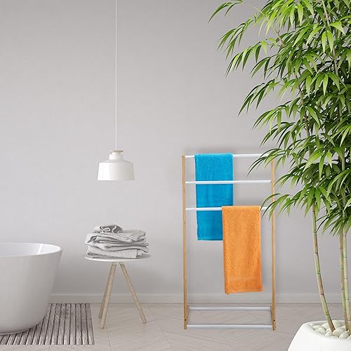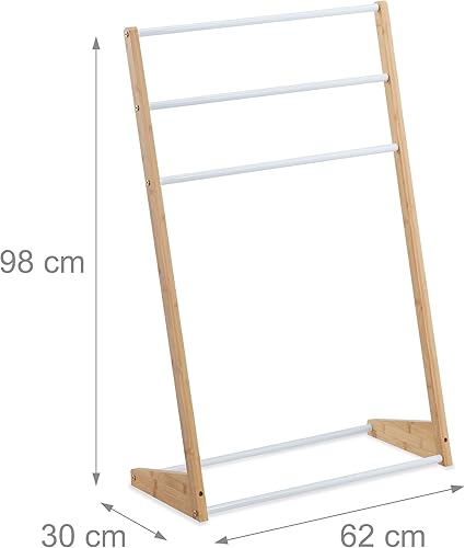 Relaxdays Handtuchhalter stehend, 3 Handtuchstangen, Bad, Schlafzimmer, HBT: 98 x 62 x 30 cm, Bambus & Eisen, Natur/weiß