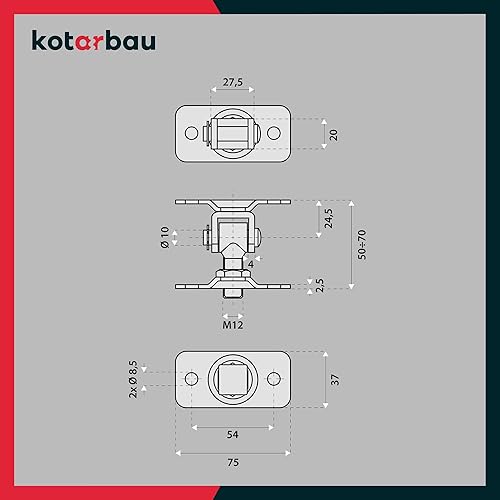 KOTARBAU® Torband Verstellbar Türangeln M12 zum Schrauben Doppelsockel S235JR Stahl Galvanisch Verzinkt Türscharniere Silber Einstellbares Scharnier Torscharniere Türband Torangel