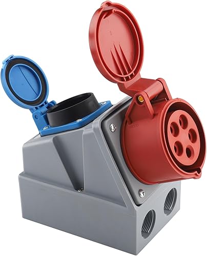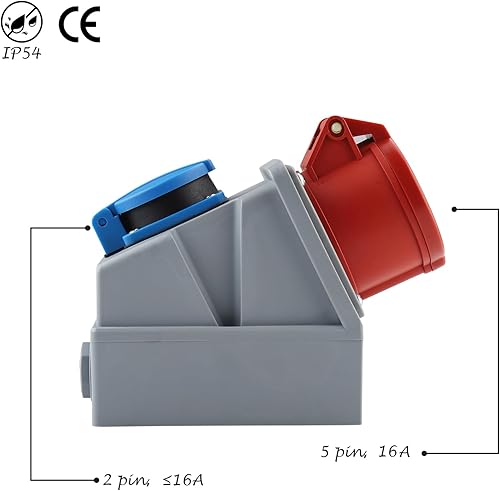 Pfloge® CEE Wandsteckdose, 415 VAC u. 220 VAC, CEE 16A Wandsteckdose, 5-polig, 3P + N + PE, IP54 Kraftsteckdose 16A