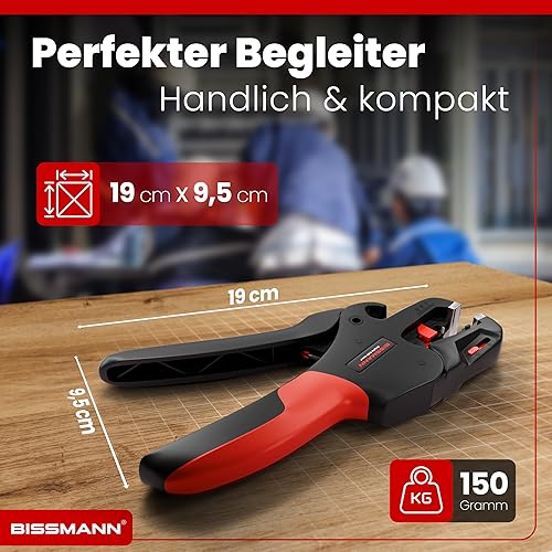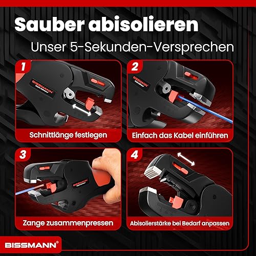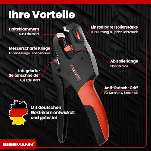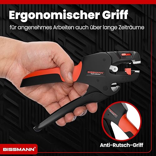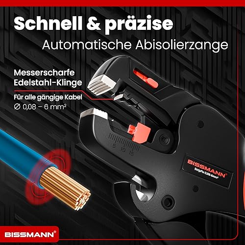 Bissmann® Automatische Abisolierzange | Schnelles & Präzises Abisolieren | Edelstahlklinge - Inkl. Seitenschneider | Für alle gängige Kabel 0,08 bis 6 mm² | Abisolierwerkzeug | Kabelabisolierer