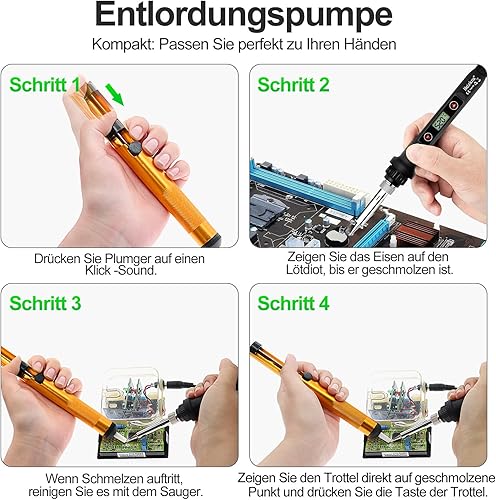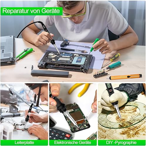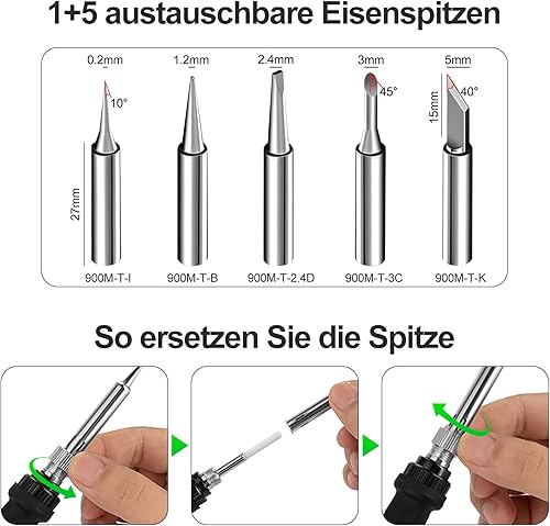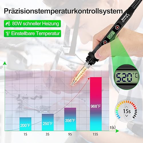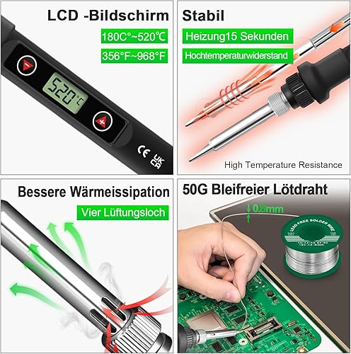 Lötkolben Set 80W LCD Einstellbar Temperatur 180-520°C Lötkolben mit Ein/Aus Schalter, 50g Lötdraht, 5 Lötspitzen, Entlötpumpe, Lötkolbenständer, Pinzette, Lötset für Elektrische Arbeiten
