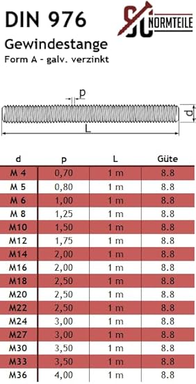 Gewindestange - M20 x 1000 mm - (10 Stück) - DIN 976 / DIN 975 - Güte 8.8 - galvanisch verzinkt - SC976 - SC-Normteile