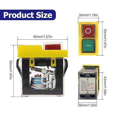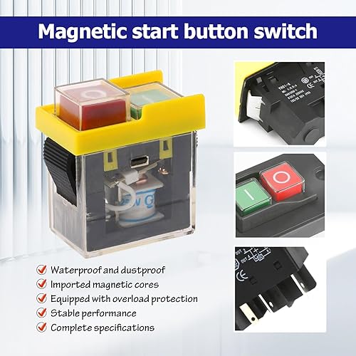 Idota Sicherheitsschalter Universal KJD6 5E4 250V 6A, Elektromagnetischer Schalter, Wasserdicht, Magnetisch, Maschinenschalter Schutz vor Stromausfall, Werkzeugschalter, Starttaste, Schutzklasse IP55