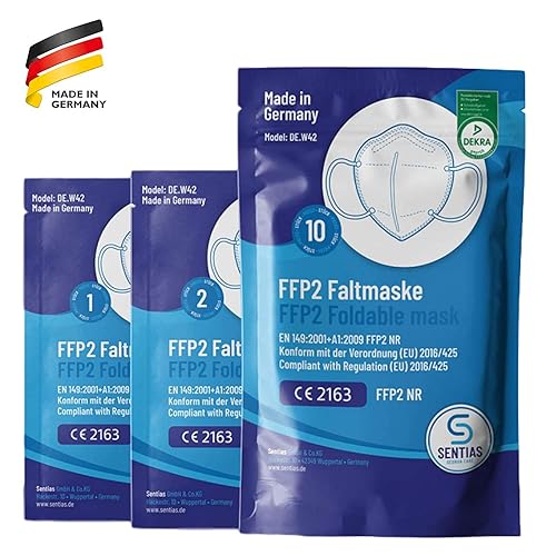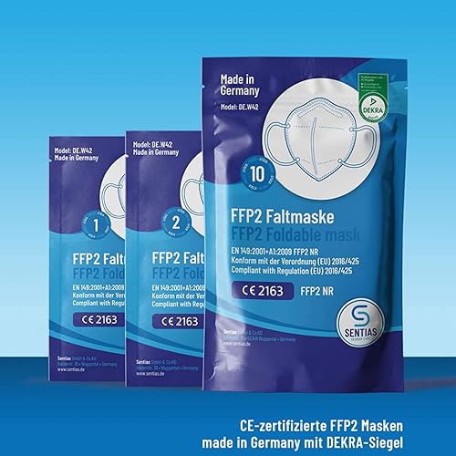 SENTIAS - FFP2 Maske, Atemschutzmaske | Schutzmasken - Faltmasken zertifiziert in Deutschland | 50 Stück