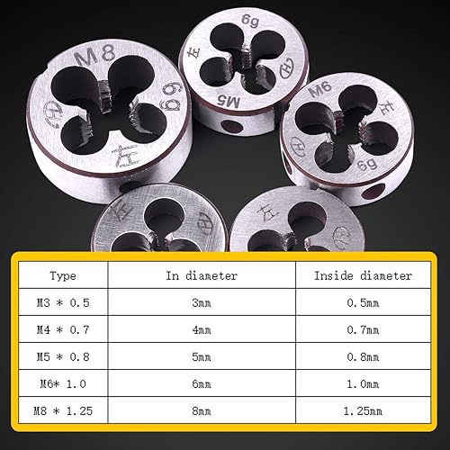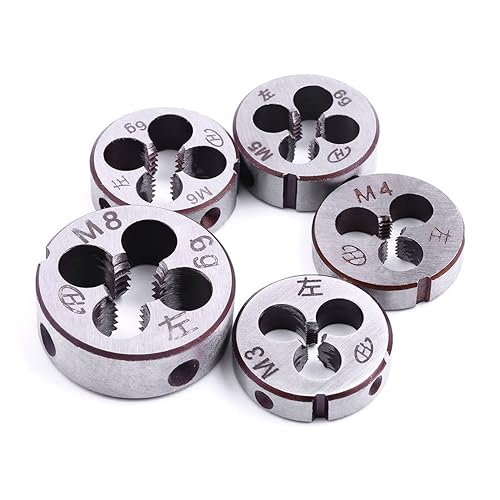 ATOPLEE 5 Stück Metrischer Linksgewinde-Schneideisen Satz,M3 x 0,5 mm / M4 x 0,7 mm / M5 x 0,8 mm / M6 x 1,0 mm / M8 x 1,25 mm