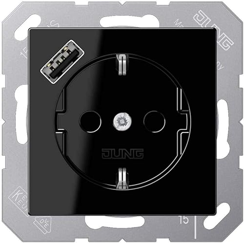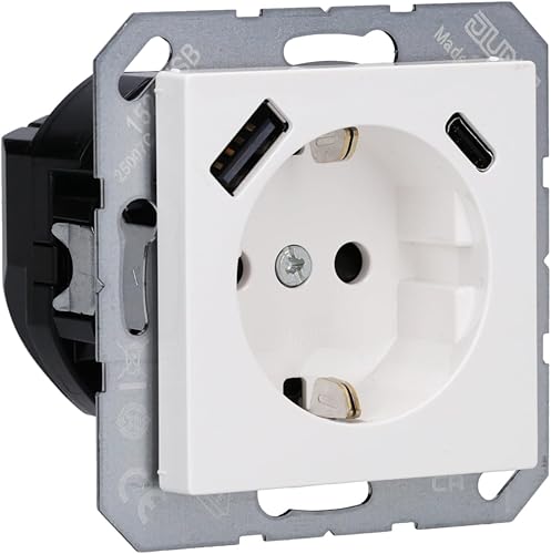 Jung A1520-15CAWW SCHUKO-Steckdose mit USB Typ AC (3A) mit erhöhtem Berührungsschutz (Thermoplast bruchsicher) Alpinweiß Serie A