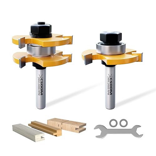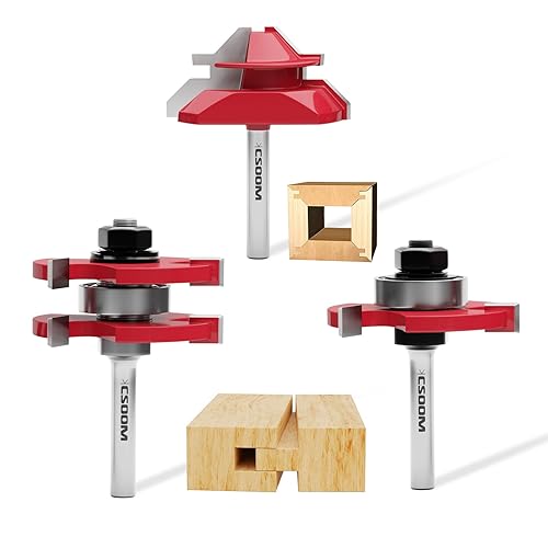 CSOOM 3-teiliges 45 Grad Gehrungsfräser & Scheibennutfräser, 8mm Schaft Nut und Feder Fräser Set, Ideal für MDF, Hartholz, Weichholz und Spanplatten