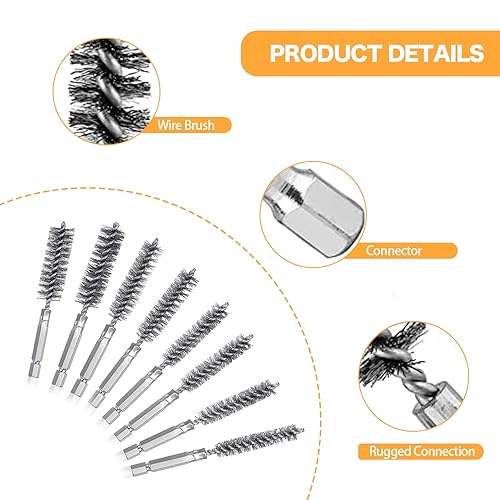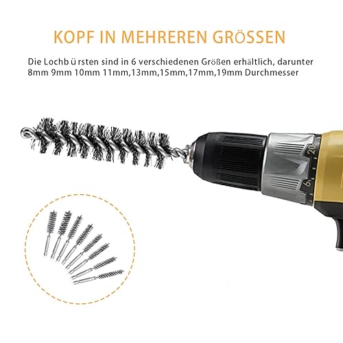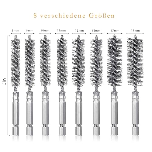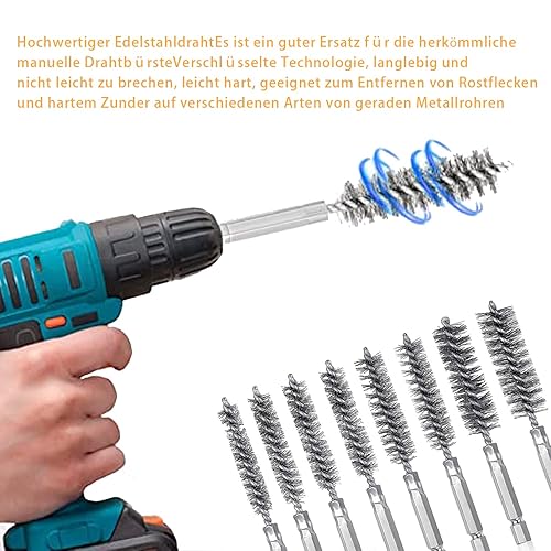 8 Stück Drahtbürste Bohrmaschine, Verschiedene Größen Zylinder-Drahtbürste, mit Sechskantstange Edelstahl-Lochbürste, Zylinderbürste für Bohrmaschine Polier Schleifen Entrosten Entgraten