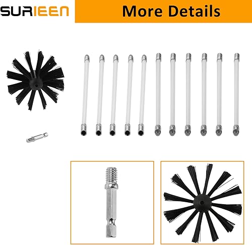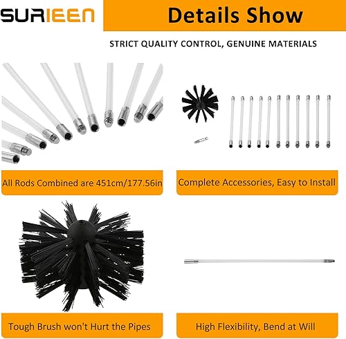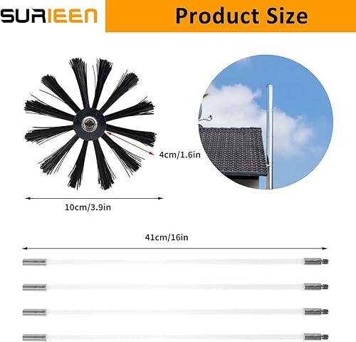 Ofenrohrbürste Stange Set, Kanalentlüftungs Reinigungsset, 11 Flexible Kaminreinigungsstab 410mm, 100mm Bürstenkopf, Kaminbürste, Schornsteinfeger Bürste für Trockner Vent/Abwasserrohr