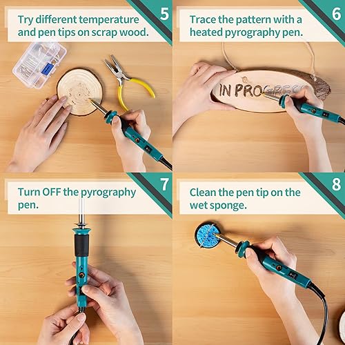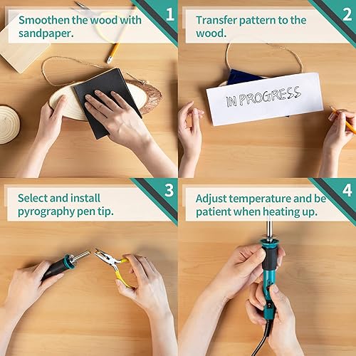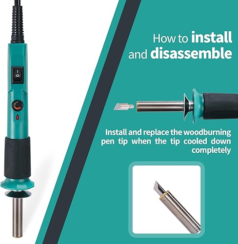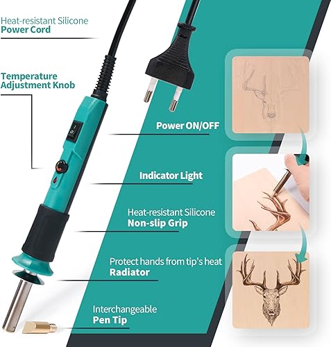 YIHUA 930-IV Brandmalerei Lötkolben Set Brennkolben für Holz Temperatur Einstellbar mit 25 Pyrografie-Tipps, 10 Brandmalholzstücke(EU PLUG)