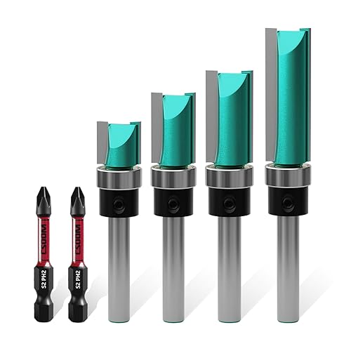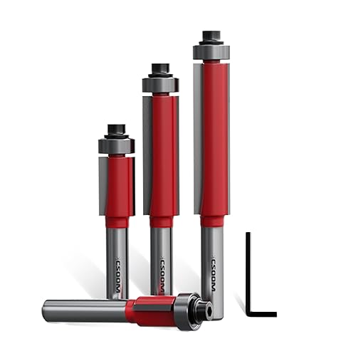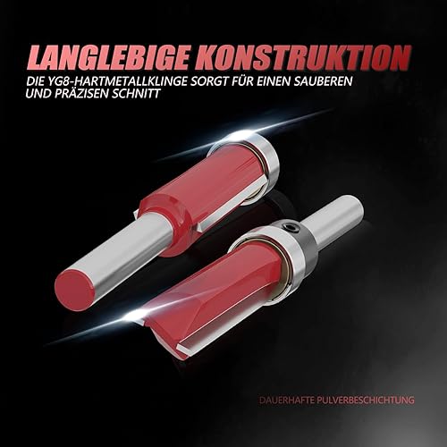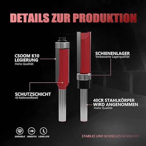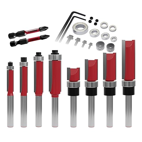 CSOOM 10 Stück Bündigfräser mit 2 Schlagmagnetbits, 6 Lager, 2 Schraubenschlüssel, 8mm Schaft Bündigfräser-Set,Hartmetallfräser, Werkzeuge für die Holzbearbeitung