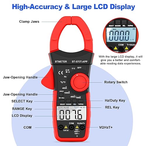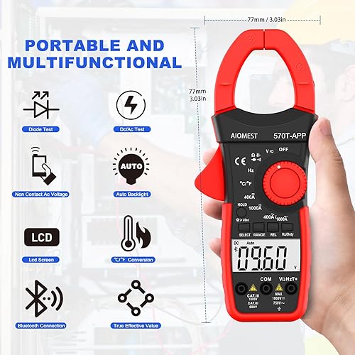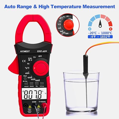 AIOMEST Stromzange, Strommessgerät AC/DC Strom: 0-1000A, 570T-APP strommesszange True-RMS 4000 Counts Auto-Ranging, misst Spannung Multimeter AC/DC Spannung, Widerstand, Ohm