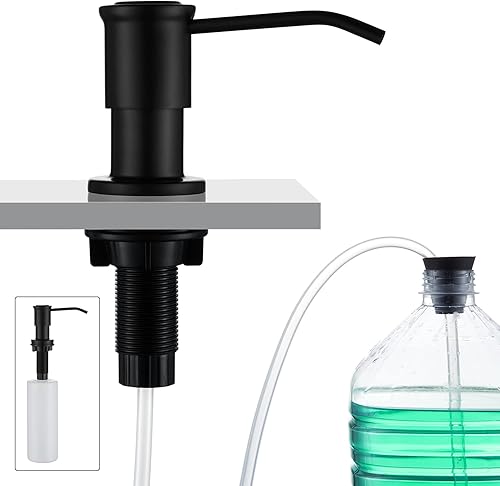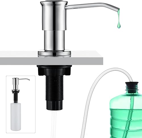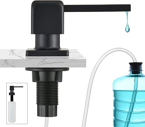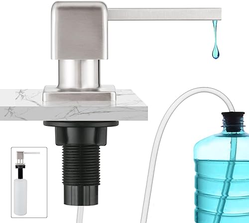 CREA Seifenspender Einbau Küche, Spülmittelspender Küche, Seifenspender für Spülbecken mit 500ML Flasche und 1,0 m Verlängerungsschlauch von Oben Befüllen, Gebürstetes Gold