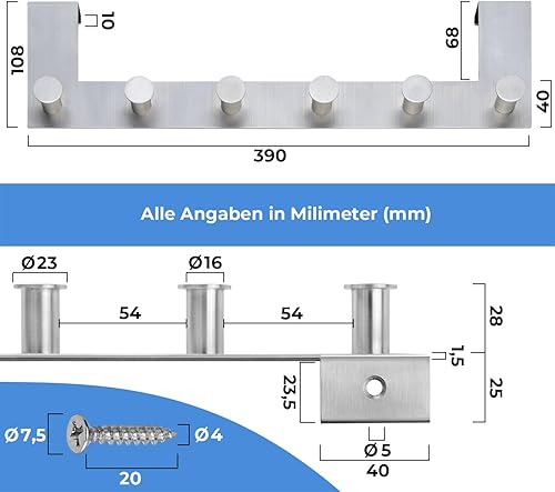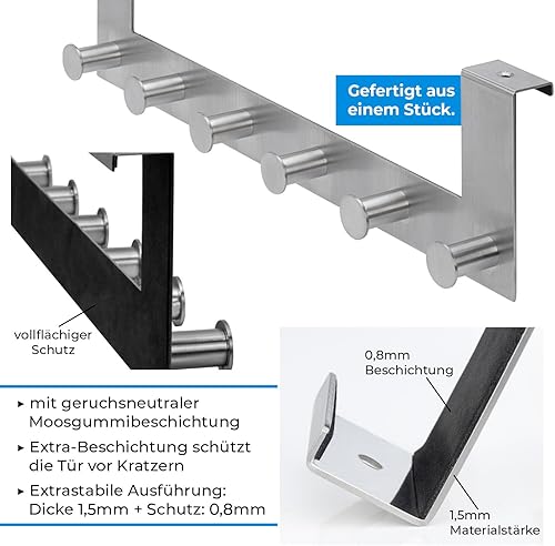 Stahlia Türhaken zum Einhängen Edelstahl schwarz Handtuchhalter 6 Haken Garderobenhaken Kleiderhaken RUND Türhaken Garderobenleiste Türgarderobe