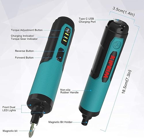 Mini Akkuschrauber, Kiprim ES3 Akkuschrauber,3,6V, 1.3Ah Li-Ion Akku mit Batterieanzeige, 2-Drehrichtung, LED-Licht, USB-Ladekabel