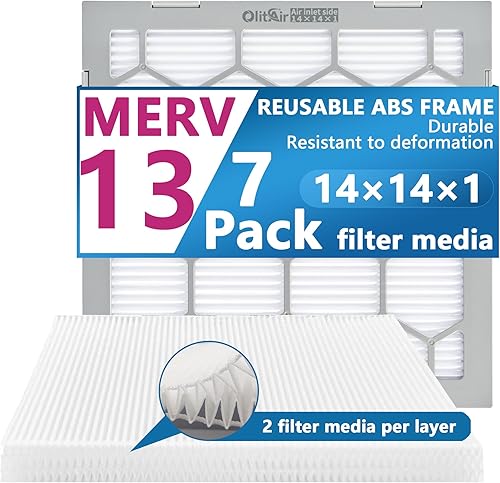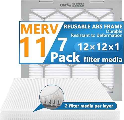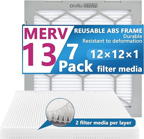 OlitAir 12 x 12 x 1 MERV 13 Luftfilter, AC-Ofen-Luftfilter, wiederverwendbarer ABS-Kunststoffrahmen, 7 austauschbare Filtermedien. Tatsächliche Größe (ca.): 30 x 30 x 2 cm