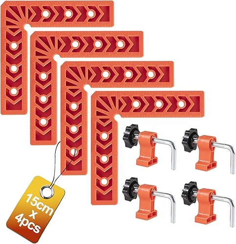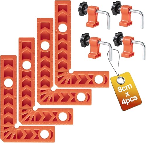 YUENGJGI 90-Grad-Winkelzwingen Positionier-Quadrat-Set, Rechteckzwingen Holzwerkzeug, Geeignet für Bilderrahmen, Schränke, Kisten, ein Set mit 8 Teilen(8cm/ 10cm), mit 8 Klemmen