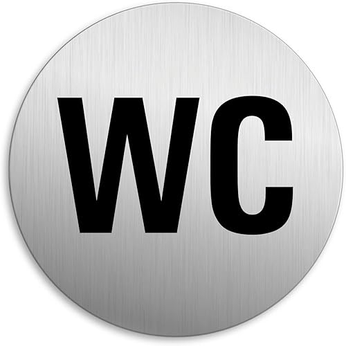 Schild WC Toilettenschild Ø 75 mm Aluminium Edelstahloptik selbstklebend Nr.49004-K