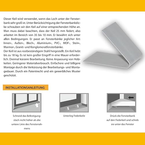 Set 5 x Montagekeil, Keil für Fensterbank, Fensterkeile, Federkeil, Ideal für Fensterbänke F2