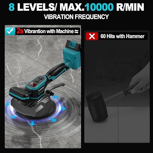 blayram Kabelloses Fliesenvibrationswerkzeug, FliesenrüttlerNivelliergerät für Makitta 18V-Akku, 8 Geschwindigkeiten einstellbarer Saugnapf mit Digitalanzeige, für Fliesen, Böden, Wände, dickes Glas