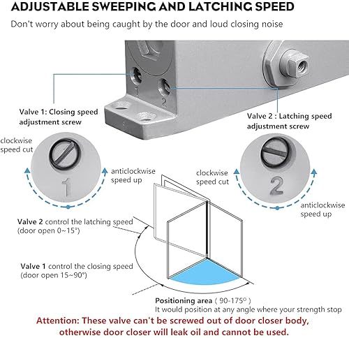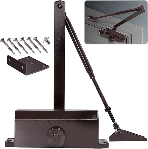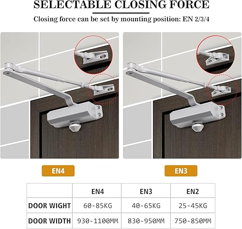 MARIE Türschließer Automatischer mit Feststellfunktion, EN2/3/4 Obentürschließer Hydraulischer Puffer Geschlossen für Innentür & Außentür 60-85 kg mit Videoinstallation EN1634-1 Zertifizierung Braun