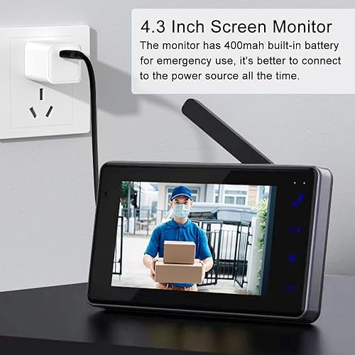 Kabellose Türklingel mit 1080P-Kamera, 4,3 Zoll IPS Bildschirm kabellose Video-Türsprechanlage 170° Betrachtungswinkel Bluetooth Video Gegensprechanlage für die Familie Heimvideo-Türklingel kein WLAN