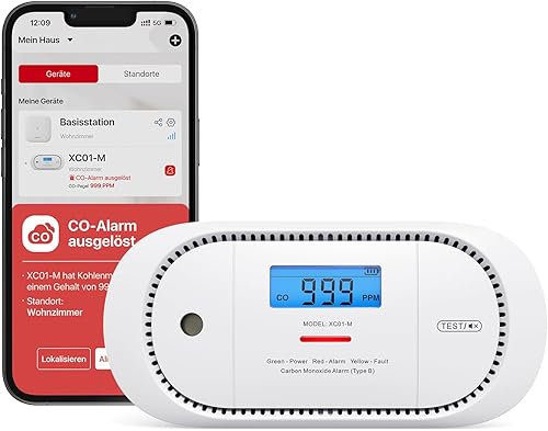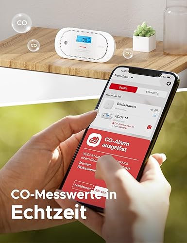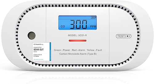 X-Sense Kohlenmonoxid Melder mit digitalem LCD-Display, CO Melder mit austauschbarer 5-Jahres-Batterie und Spitzenwertspeicher, XC01-R