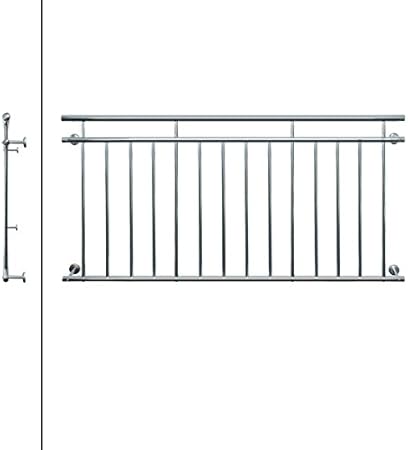 ECD Germany Französischer Balkon 184 x 90 cm | mit 14 Füllstäben | glänzend | aus Edelstahl | Balkongeländer Fenstergitter