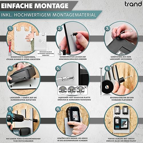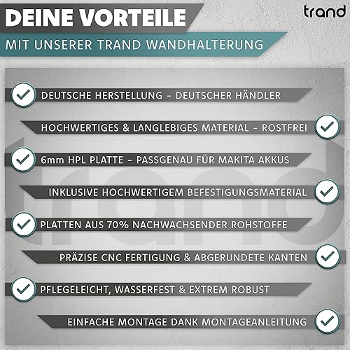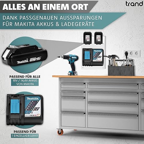 trand Wandhalterung für Makita Akkus (18V & 14,4V) & Ladegeräte – Robuster Akkuhalter für Werkstatt & Garage | Premium Qualität Made in Germany