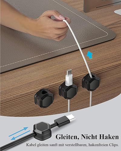 12 Stück Kabelhalter, Kabel Organizer, Kabelhalter Selbstklebend, Magnetische Kabelclips, Kabelbefestigung, Kabelhalterung für Wand, USB, Audiokabel, Ladekabel, Nachttisch (Schwarz)
