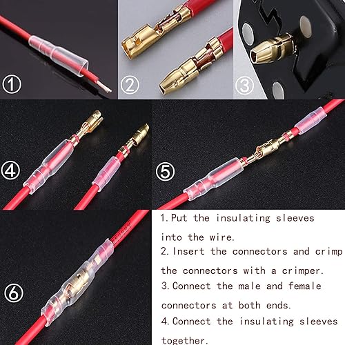Rundsteckverbinder Motorrad Doppelt, 400PCS 3,9mm Messing Bullet Terminals Connector mit Isolationsabdeckung, Stecker Rundstecker kfz Rundsteckhülsen elektrik Crimp Terminal