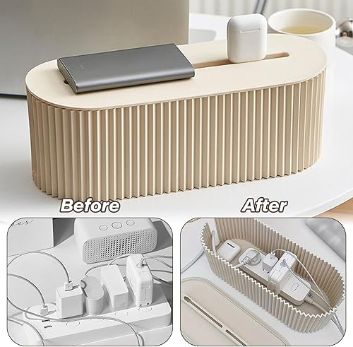 Kabelbox, Steckdosenbox Mit Deckel, Kabelmanagement Box Kabel Organizer Box, Kabel Aufbewahrungsbox Kabel Box Aufbewahrung, zum Verstecken und Organisieren von Kabeln, Weiß