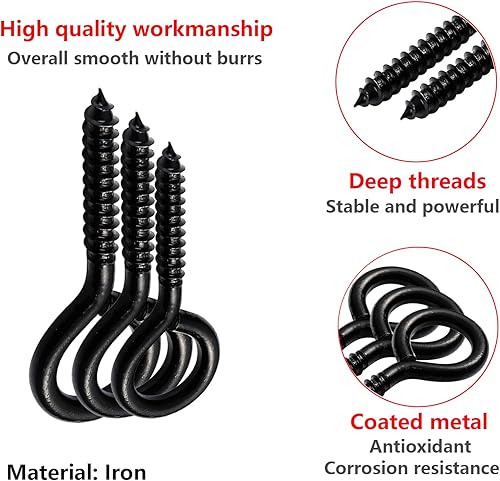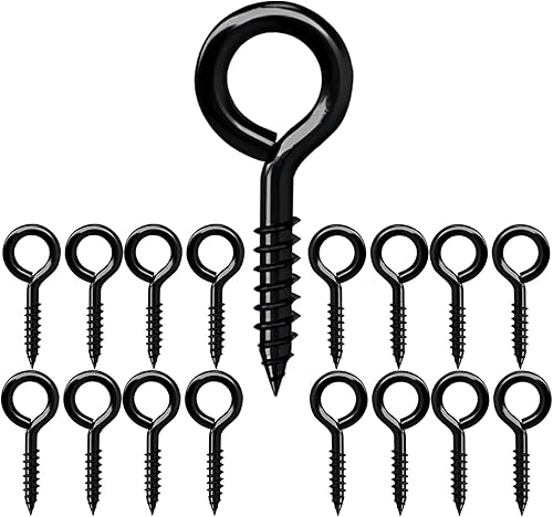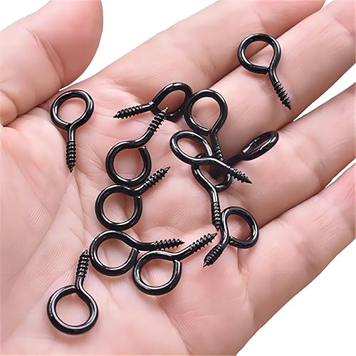 Qrity 20 Stück Ösen-Schrauben 20mm, Schraubring, Kleines Schraubenloch, Ring-Schrauben, Q-Typ Schraubhaken, Ösenschrauben, Schwarz