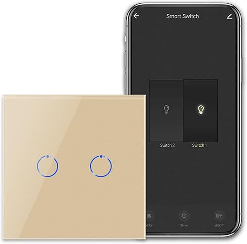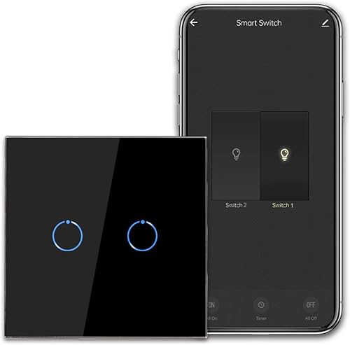 CNBINGO Smart Touch Lichtschalter Arbeiten mit Alexa, Google Assistant - WLAN Schalter unterputz - mit Glas Panel - Wandschalter einfach in Weiß - Neutralleiter Wird Benötigt - 600W/Fach