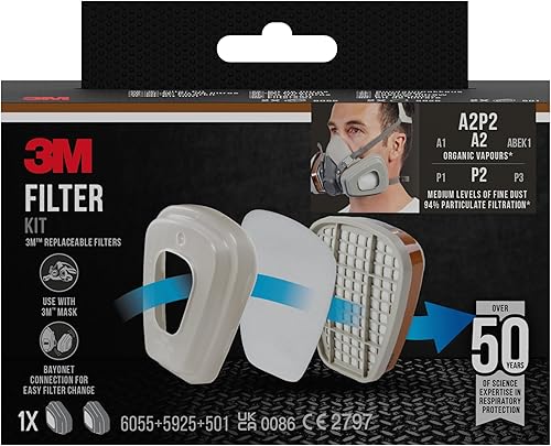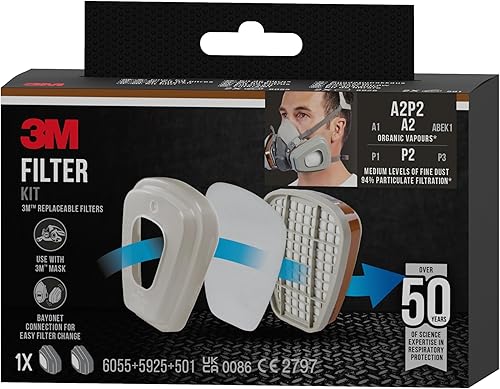 3M 6002 CR Ersatzfilter für Farbspritzarbeiten 6002CR – Austauschfilter mit Schutzstufe A2P2 für 3M Halbmasken für Farbspritz- & Maschinenschleifarbeiten – 1 Filter mit Doppel-Atemventil, 18 x 9 x 24 cm