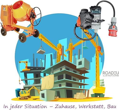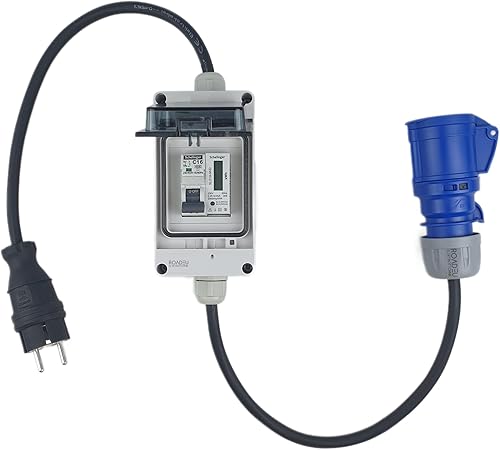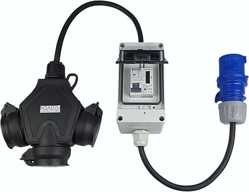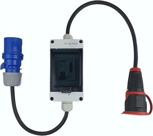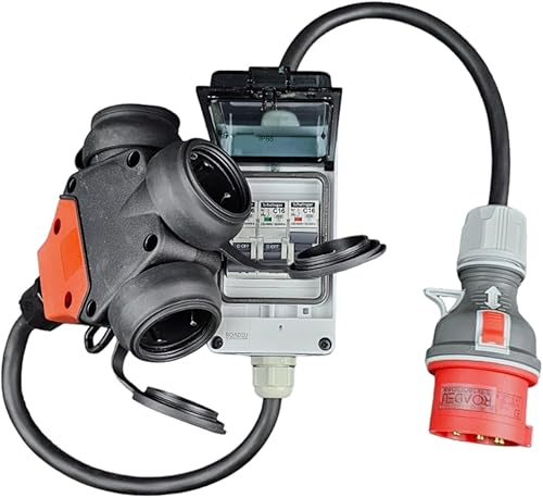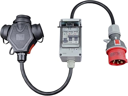 RoadEu Starkstrom Adapter, CEE Stecker 32A, 380V auf 220V Adapter, 3X 220V Schuko Kupplung, Sicherungskasten mit 3X Leitungsschutzschalter 16A C, Gummi Starkstromkabel 1 Meter. Adapter 32A auf 230V