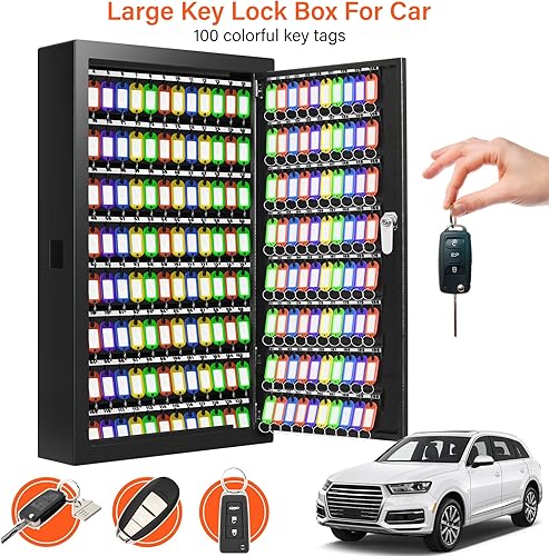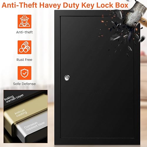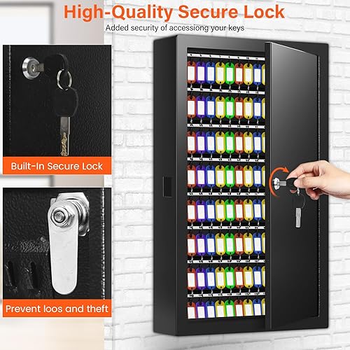 Schlüsselkasten für 200 Schlüssel, Diebstahlsicherer Schlüsselschrank mit Beschreibbarem Schlüsselanhänger, Wandmontierter Schlüsseltresor mit Seitlichem Schlüsseleinwurf für Auto Büro Haus Vermietung