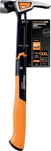 Fiskars Universalhammer IsoCore L zum Einschlagen der Nägel, Länge: 34 cm, Gewicht: 0,91 kg, Schwarz/Orange, 1020214