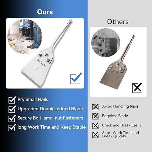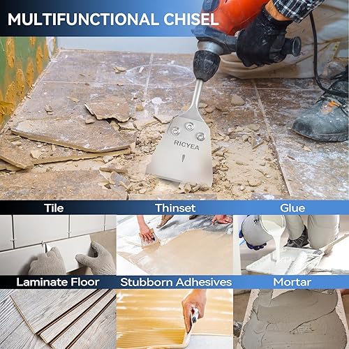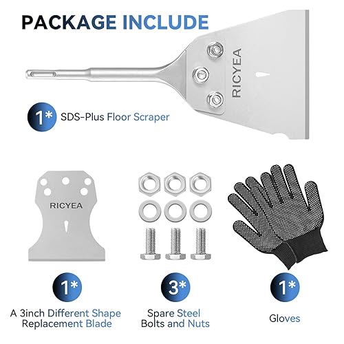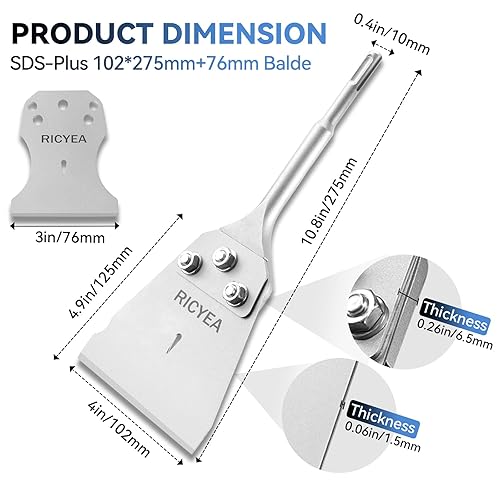 Ricyea Spachtelmeißel SDS-Plus 270x102 mm, Fliesenmeißel inklusive 76mm Ersatzklinge, Schrauben und Handschuhe, SDS Plus Flachmeißel breit für Bohrhammer zum Fliesen, Fliesenkleber