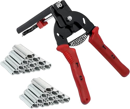 MOGOULUA Hog Ringzangen Set Haustierkäfig Zange mit 1200 Stück Zaunzange Ringe Clip Automatische Zaun Zange für Matratzen Auto Kissen Sofas Zäune Pet Käfige Installation Equipment Tool (Rot)