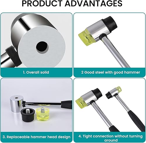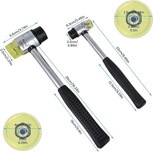 Aicharynic Schonhammer, Doppelkopf Gummihammer, 22mm + 35mm Kunststoffhammer, Gummi Hammer Stahlrohrstiel mit Rutschfestem Griff für Holz, Kunststoff, Leder und Kunsthandwerk