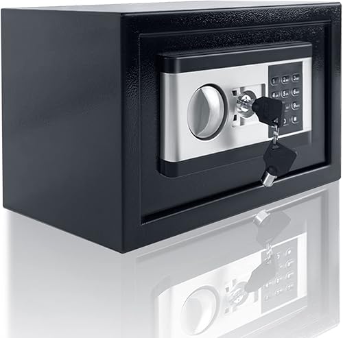 NAIZY Mini Tresor für Zuhause 12L Tresor Feuerfest Wasserdicht Elektro Safe mit Batteriebox & Sicherheitsschlüssel & Alarmfunktionen Stahlsafe Möbeltresor Minisafe, Schwarz+Silber