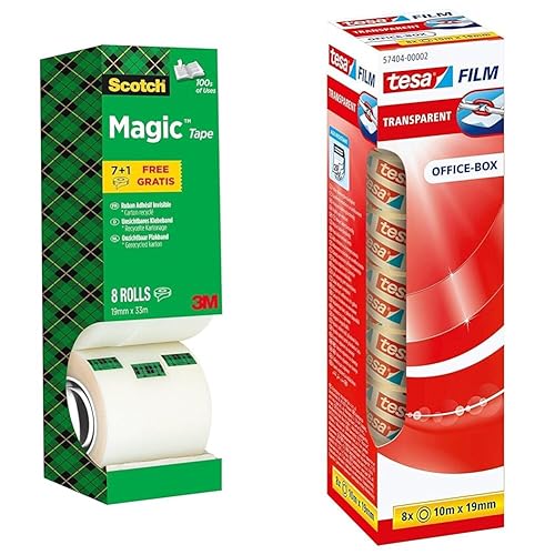 Scotch Magic Tape - Vorteilspack 8 Rollen, 19 mm x 33 m - Unsichtbares Klebeband für allgemeine Zwecke zur Reparatur, Etikettierung und Versiegelung von Dokumenten