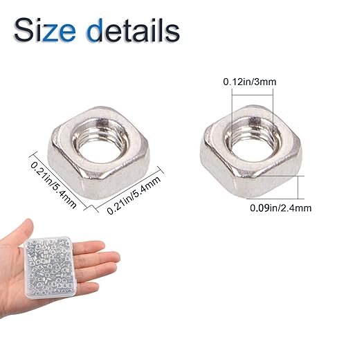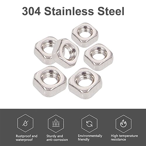 INCREWAY 200 Stück 3 mm Edelstahl M3 Vierkantmuttern, Gewindemuttern, Maschinenschraubenbefestigungswerkzeug