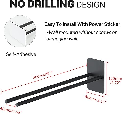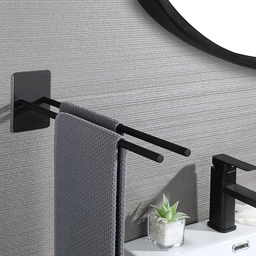 SAYAYO Handtuchhalter Ohne Bohren Handtuchhalter Schwarz Matt Handtuchstange Selbstklebend Zweiarmig Wandmontage 40CM für Badezimmer und Küche