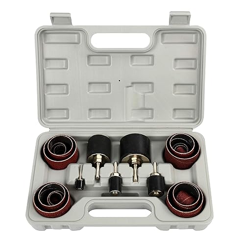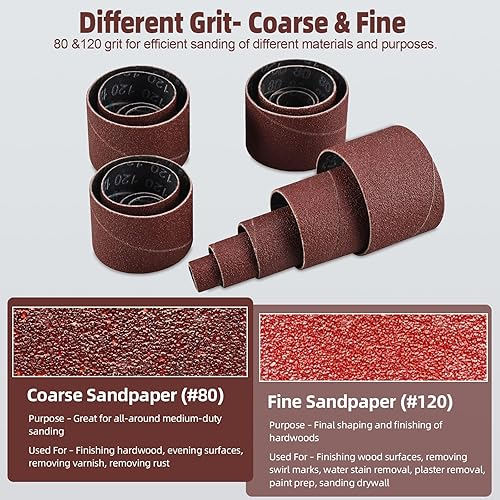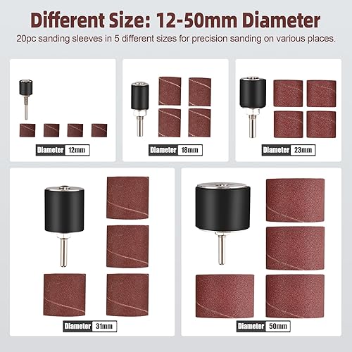 FreeTec 25tlg Schleifhülsen Schleifwalzen für Bohrmaschine, 80 120 Körnung Schleifhülsen Schleiftrommel Set, 1/4' 1/8' Schleifspindel Schleifwalzen für Holz, Schleif Zubehör, Ø 12 18 23 31 50 mm